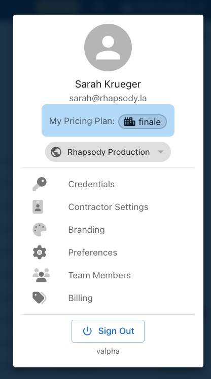 * [**Credentials:**](#credentials) Where you can update the information regarding logging into your Rhapsody account. This includes passwords, and the first name, last name, and email used to create your account